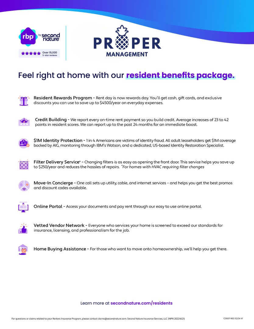 we provide a Resident Benefits Package (RBP) to address common headaches for our residents. Our